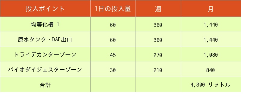 処理プロセスの初期段階および均等化槽での前処理や好気性生物反応槽にも適用することで、有機物負荷の減少が確認されました。