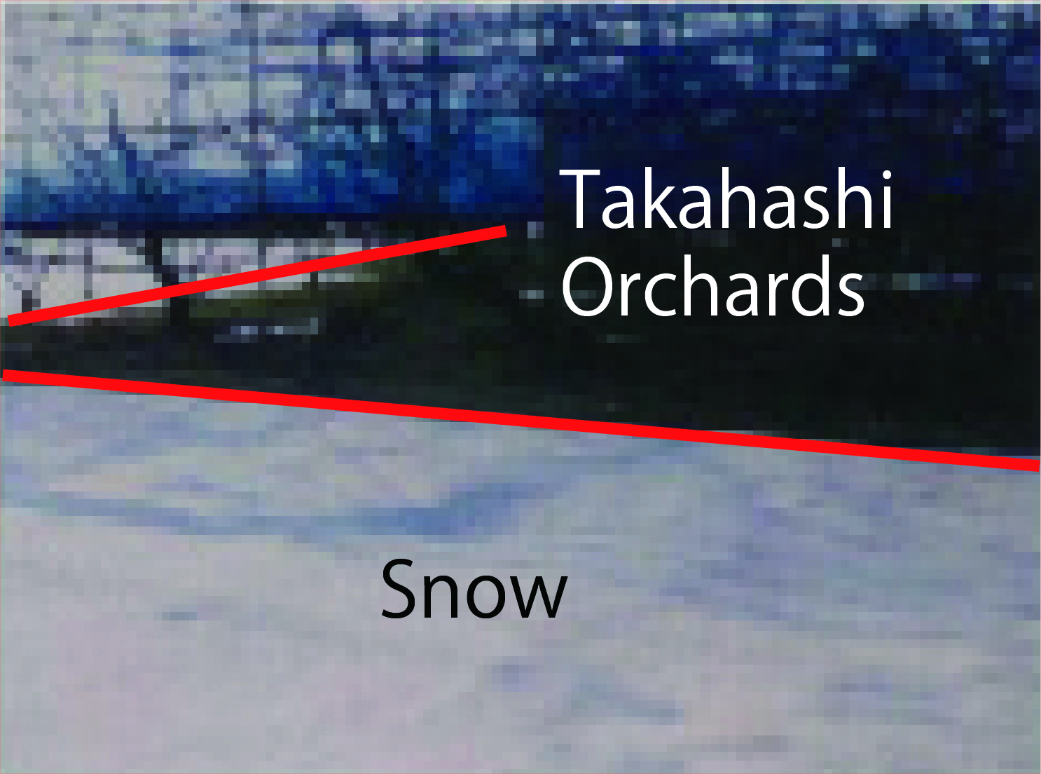 果樹園の土の上では雪が積もっても早く溶けて消え、周囲に明確な境界が現れます。EMをたっぷり使っているので土の中の微生物たちが活発に活動している様です。