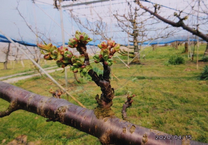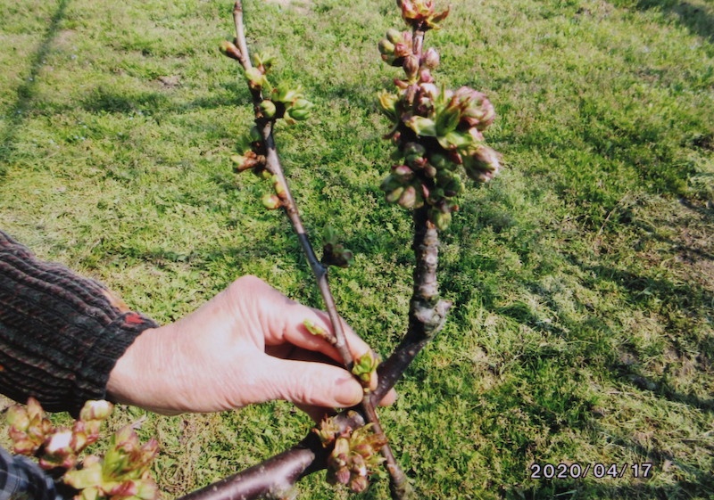 EM木炭を使い始めて最初の春が来ると、果樹園に巨大な蕾が現れました。