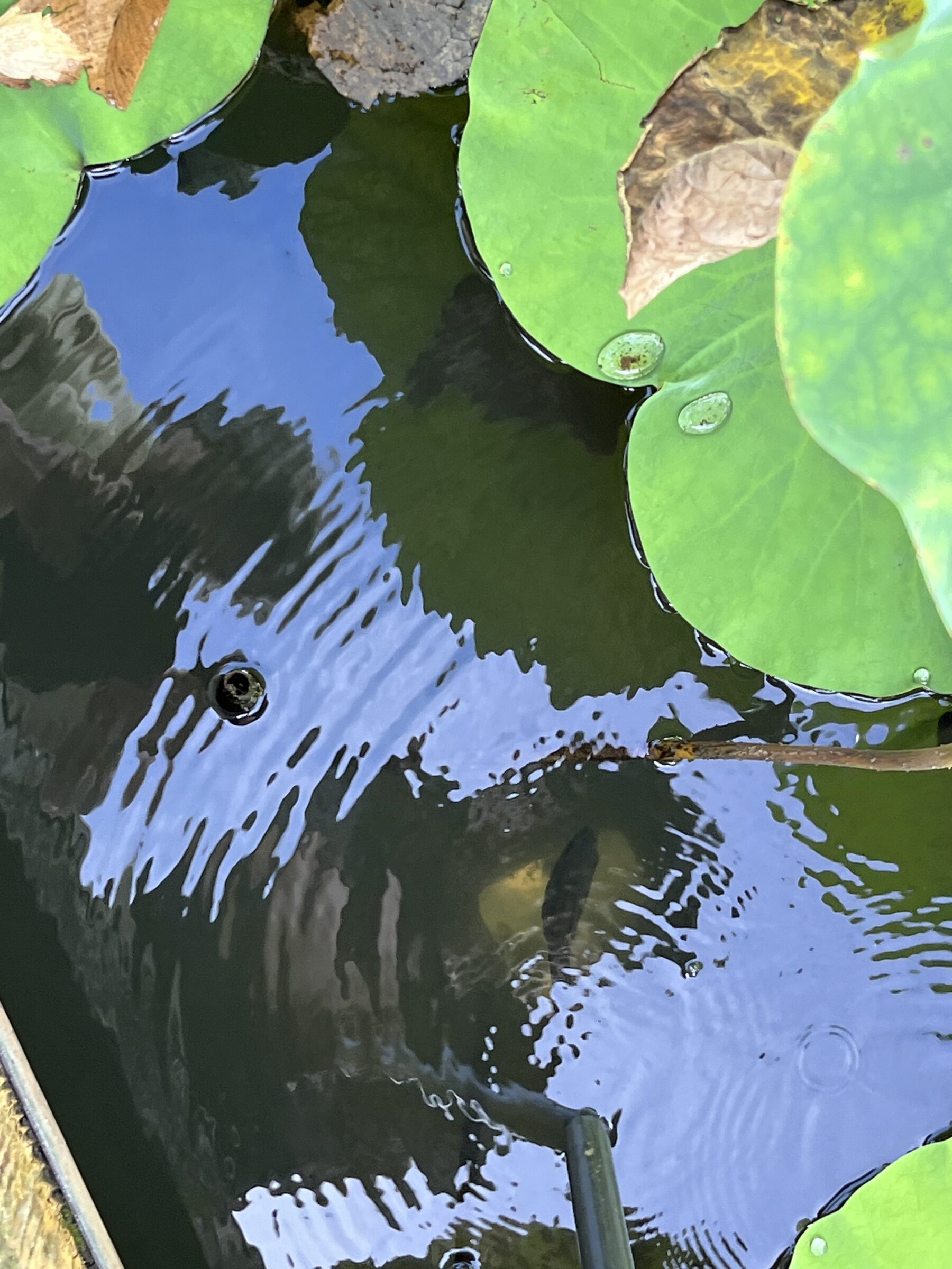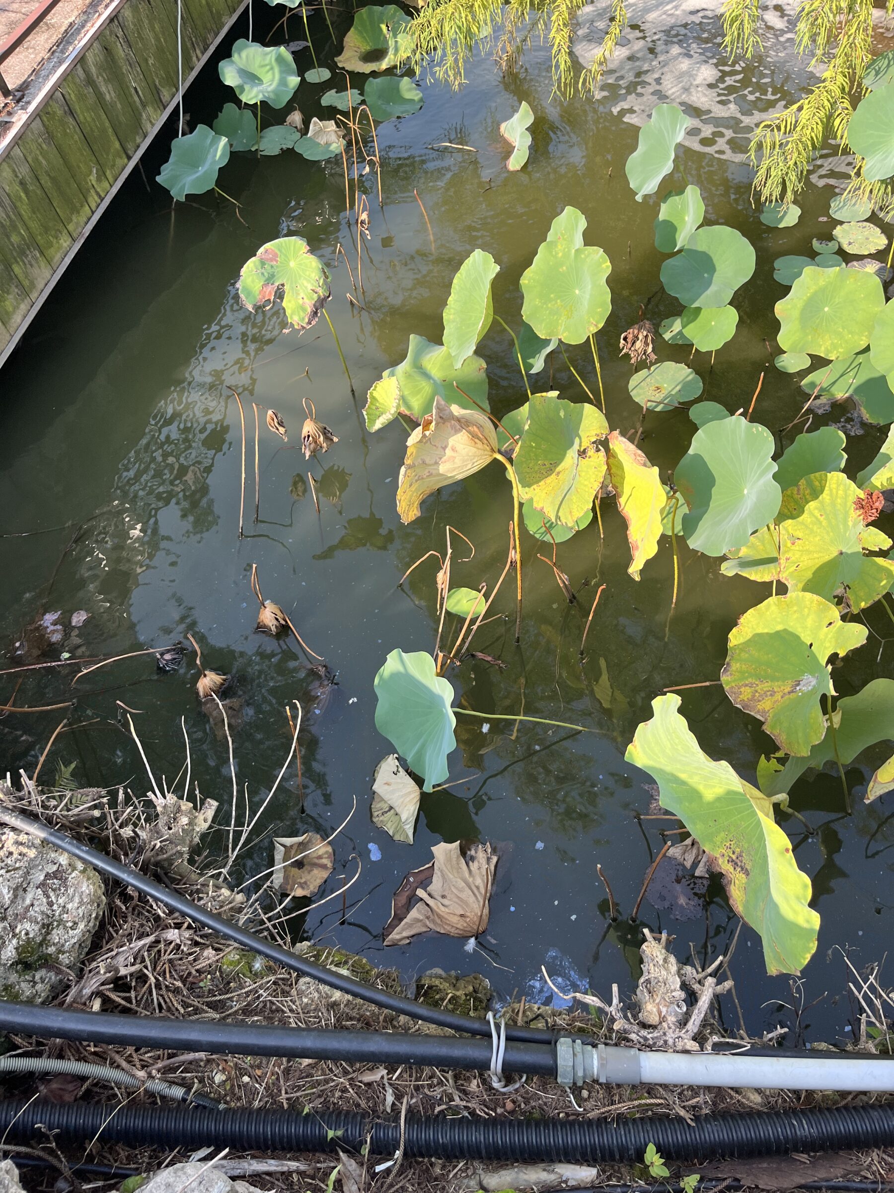 東南植物楽園の蓮池は沖縄県内でも有数の規模を誇るため、まずは蓮への影響を確認する目的で、2023年1月から6月にかけて小さな池でEMの試験を行いました。